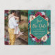 Burgundy Navy Floral on Green Photo Save the Date Announcement Postcard