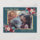 Burgundy Navy Floral on Teal | Photo Save the Date Announcement Postcard