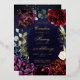 A burgundy navy wedding invitation featuring a watercolour painted scene of burgundy and navy blue peonies with shimmering gold accents against a deep navy watercolour background. This version is in GOLD FOIL so all the gold elements have real foil gold.