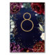 Burgundy Navy Wedding Table Number Card
