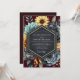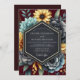 Embrace a mood of dramatic romance with this opulent artistic design. Inspired by classic still-life paintings, the artwork features a lush and layered botanical composition. A rich palette of deep burgundy, charcoal, and slate blue provides a moody backdrop for vividly rendered golden ochre dahlias and chrysanthemums.