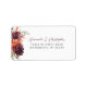 The left-hand border of this romantic modern wedding invitation RSVP address label features a watercolor floral bouquet in autumn shades of burgundy and burnt orange. The customisable text combines elegant modern burgundy handwriting script and charcoal grey sans serif font on a white background. Ideal for a fall or winter wedding.
