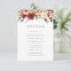 This burgundy orange floral wedding schedule of events enclosure card is perfect for your rustic boho blush, dark green, and gold garden wedding. Design features a wreath or bouquet of minimalist watercolor peach, dusty rose, purple, and light pink florals along with copper, evergreen, yellow, and rust-coloured greenery. The flowers in this design are poppy, rose, and peony. The design is ideal for a simple, elegant spring, summer, or fall country wedding. Please find other matching / coordinating wedding stationery in the rest of this collection.
