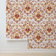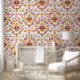 Burgundy Orange White Damask Floral peel and stick Wallpaper