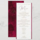 Wedding Menu with Bright burgundy dog roses flowers on bright bordo background. Bright crimson floral background. Summer Monochrome watercolor painting textured languid passionate purple floral landscape Wedding Menu. Burgundy Passion Collection.