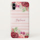 This personalised phone cover features blush pink stripes with watercolor burgundy and blush roses and flowers. Personalise it with a name.