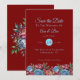 Burgundy Peony and Blue Rose Save the Date Invitation