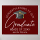 This modern burgundy custom graduation party poster features your high school or college graduate for the class of 2025. Customise with your graduating year under the chic handwritten script and grey grad cap for trendy personalised graduation party decor.