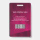 Modern photo business ID identification card with barcode over a burgundy background. Additional information can be added to the backside of this business ID badge