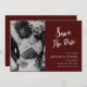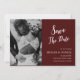 This elegant Photo Save the Date - features white handwritten and script and place for your photo on the burgundy background. The reverse side of the invitation is burgundy. You can add your own photo or leave this photo in a classic style. If you need help processing your photo, please write to me in a message.