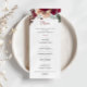 This burgundy pink blush floral dinner menu card is perfect for a rustic wedding. The design features burgundy, pink blush flowers with green leaves, inspiring artistic beauty.
