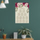 A beautiful wedding seating chart, with an ivory background and a burgundy and pink blush floral arrangement. Easy to edit or delete the available text fields to suit your requirements. You can change the font and font size, and move each text box around the page to accommodate the spacing for your particular table plan. Lots of matching items in this elegant collection, such as invitations, place setting cards and signs.
