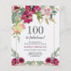 Burgundy Pink Floral 100th Birthday Invitation