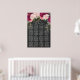 A beautiful and elegant wedding seating chart, with a chalkboard effect background and a burgundy and blush pink floral arrangement. Easy to edit or delete the available text fields to suit your requirements. You can change the font and font size to accommodate the spacing for your particular table plan. I have added 16 tables as a guideline but if you need less just delete the extra tables and move the text boxes around to suit your preferred layout once you've added your own information. Lots of matching items in this collection, such as invitations, place setting cards and signs.