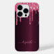 An elegant, girly and glam phone case. Dark pink cherry coloured faux glitter drips. Deep, dark burgundy gradient background. Personalise and add a name, written with a modern hand lettered style script with swashes. Light pink coloured letters. To keep the swashes only delete the sample name, leave the spaces or emoji's in front and after the name.