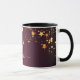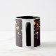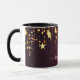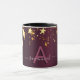An elegant, girly and glamourous mug. Deep, dark moody burgundy gradient background, decorated with faux gold stars dripping. Personalise and add a name and monogram letter. The name is written with a modern hand lettered style script with swashes. Pink coloured letters.