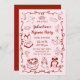 Editable Color Burgundy Pink Girly Hand Drawn Galentine's Day Pajama Party Invitation.