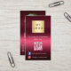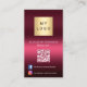 A burgundy and pink background colour. Personalise and add your business logo,photo, name, title and contact information. Add your website url/link to the Qr code. With Facebook and Instagram icons. White text.