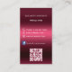 A burgundy and pink gradient background. Personalise and add your business logo,name, title and contact information. Add your website url/link to the Qr code. With Facebook icon. White text.