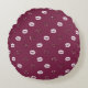 Burgundy Pink Red Glitter White Kisses Lips Round Cushion