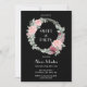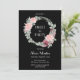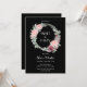 This elegant flora birthday invitation features a burgundy-pink rose flower with leaves and greenery arrangement on a black backdrop.