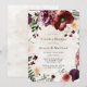 Design features a printed coloured with floral element in shades of burgundy marsala and tan over greenery leaves and wildflowers peony blooms on a light tan watercolor background.. Great for your wedding celebrations!