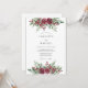 This design features a lush display of watercolor roses in deep burgundy and crimson red tones. Accents of verdant ferns, silvery eucalyptus, and delicate red berries create a sophisticated seasonal atmosphere. The artistic botanical elements are arranged in balanced clusters, evoking a sense of timeless elegance and romantic charm.