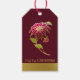 Pretty Christmas gift tags done in dark burgundy, on the front, and a gold tone, on the back of the tag. Lovely graphics of a gold and burgundy poinsettia and gold tone graphic text reading Merry Christmas, decorates the front of the gift tag. Text, on the back of the tag, is ready to personalise to read what you want. Matching products are available.
