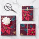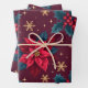 Burgundy Poinsettia & Gold Snowflake Dark Feminine Wrapping Paper Sheet