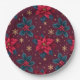 Burgundy Poinsettia & Gold Snowflake Paper Plate