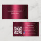 A deep burgundy gradient background. Personalise and add your name, title and contact information. Add your website url/link to the Qr code. With Facebook and Instagram icons. White text.
