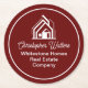 This professional realtor paper coaster is custom made with your real estate company name under the modern cursive script for an open house. This burgundy realty business party decor features a house logo image for home builder or realty agent company marketing.