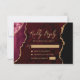 Burgundy Red Agate Gold Script Wedding RSVP Card