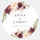 wedding sticker label, floral geometric design with burgundy red and blush watercolor hand painted flowers. The colour and text details can be personalised.