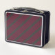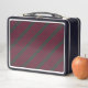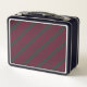 Burgundy red and charcoal five stripe pattern metal lunch box