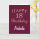 Burgundy Red and Gold Glitter 18th Birthday Card with personalised name. For further customisation, please click the "Customise it" button and use our design tool to modify this template.