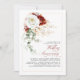 White and red flowers and gold greenery leaves elegant romantic wedding anniversary invitations
