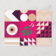 Burgundy Red Blush Geometric Pink Christmas Holiday Postcard