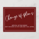 Burgundy Red Change of Plans Postponed Wedding Postcard