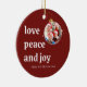 Burgundy Red Christmas Family Photo Love Peace Joy Ceramic Tree Decoration