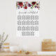 Deep red roses set the tone for this elegant floral 18-table seating chart. Blush pink roses along with purple flowers add to the floral design. An assortment of leaves and branches give it a very modern vibe. The lush borders run along both the top and bottom. The bottom border runs up a long the side to further frame the design. The wedding couple names are written in a very modern script. You can easily change the font of all the text and it's color. This rustic burgundy red seating chart is part of the Autumn Red collection. It contains many sign templates and table decor templates that you can use to personalize your ceremony and reception. You should see a link to it on this page. Please contact me, if you don't see the link or need help customizing an item.