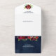 Burgundy Red Floral Mason Jar Navy Blue Wedding All In One Invitation