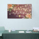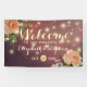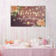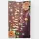 Wedding Banner Templates - Elegant Script, Watercolor Floral Peach White Roses and String Lights on Burgundy Red Background.