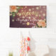 Wedding Banner Templates - Elegant Gold Script, Watercolor Floral Peach White Roses and String Lights on Burgundy Red Background.