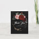 Burgundy red flowers and gold wreath elegant black wedding thank you cards