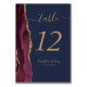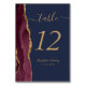 Burgundy Red Gold Agate Navy Blue Wedding Table Number