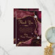 Burgundy Red & Gold Faux Glitter Agate Quinceanera Thank You Card