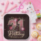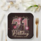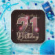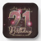 Celebrate this major milestone in glamorous style with these elegant 21st birthday paper plates. The artwork features a deep burgundy and dark chocolate background illuminated by a festive, sparkly bokeh light effect. The number "21" creates a bold centerpiece, designed with a faux pink mosaic sequin texture and outlined in a simulated gold metallic border. This chic, dark-themed aesthetic is perfect for an evening party, a girls' night out, or a sophisticated dinner celebration.