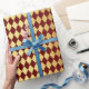 Burgundy Red Gold Royal Chessboard Diamond Cut Wrapping Paper