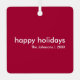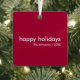 Simple, stylish "happy holidays" quote christmas tree ornament with modern typography in white on a wine red background in a minimalist 'scandi' scandinavian design style. The ornament can be easily personalized with your own holiday greeting, family name and year to make a truly bespoke christmas holiday decoration for the festive season!
